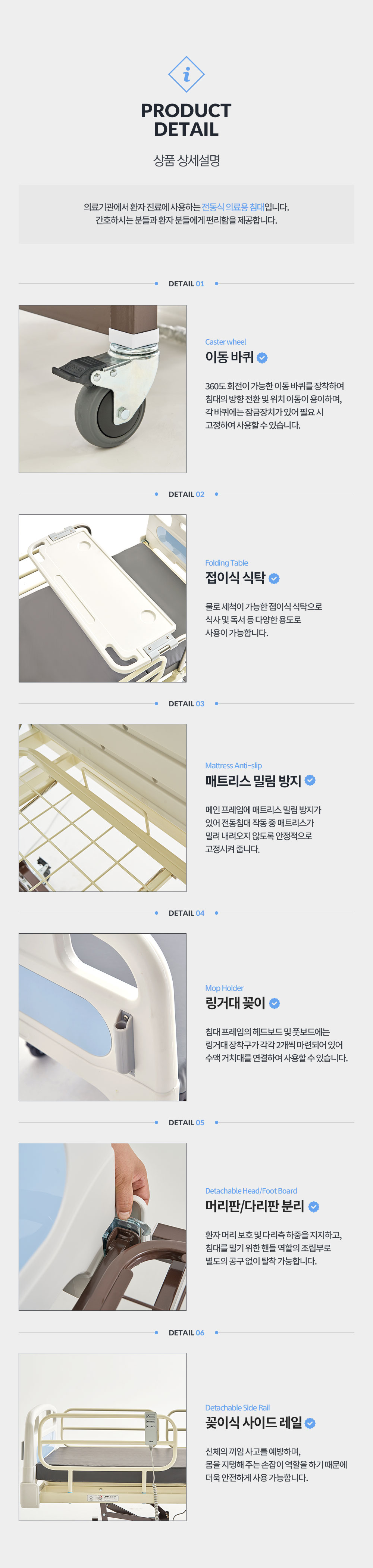 전동침대 : 누운 자세에서 혼자 일어나 앉지 못하는 경우 전동으로 상반신을 일으킬 수 있는 침대