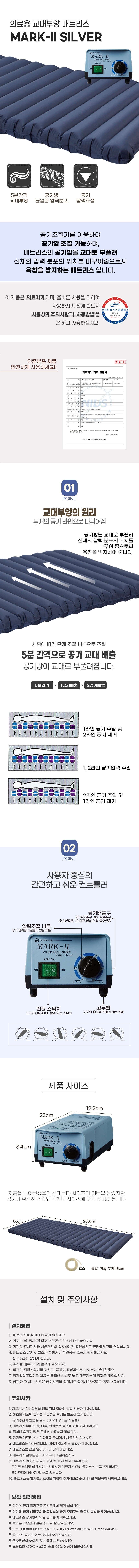 욕창예방매트리스 : 체중을 분산하고 통풍을 원할하게하여 장시간 한 자세로 누워있을 경우 발생할 수 있는 욕창을 예방하기 위한 매트리스