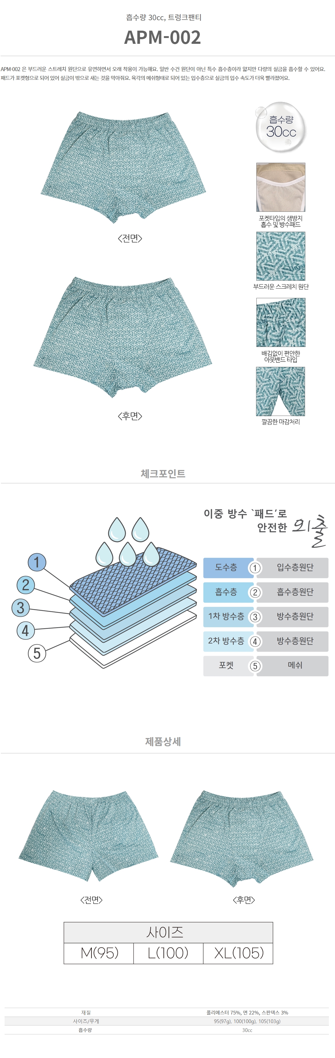 요실금팬티 : 일회용이 아닌 패드가 부착되어 세탁 후 반복사용이 가능한 일반속옷형태의 제품