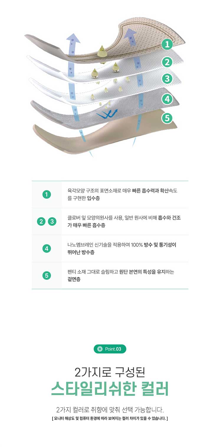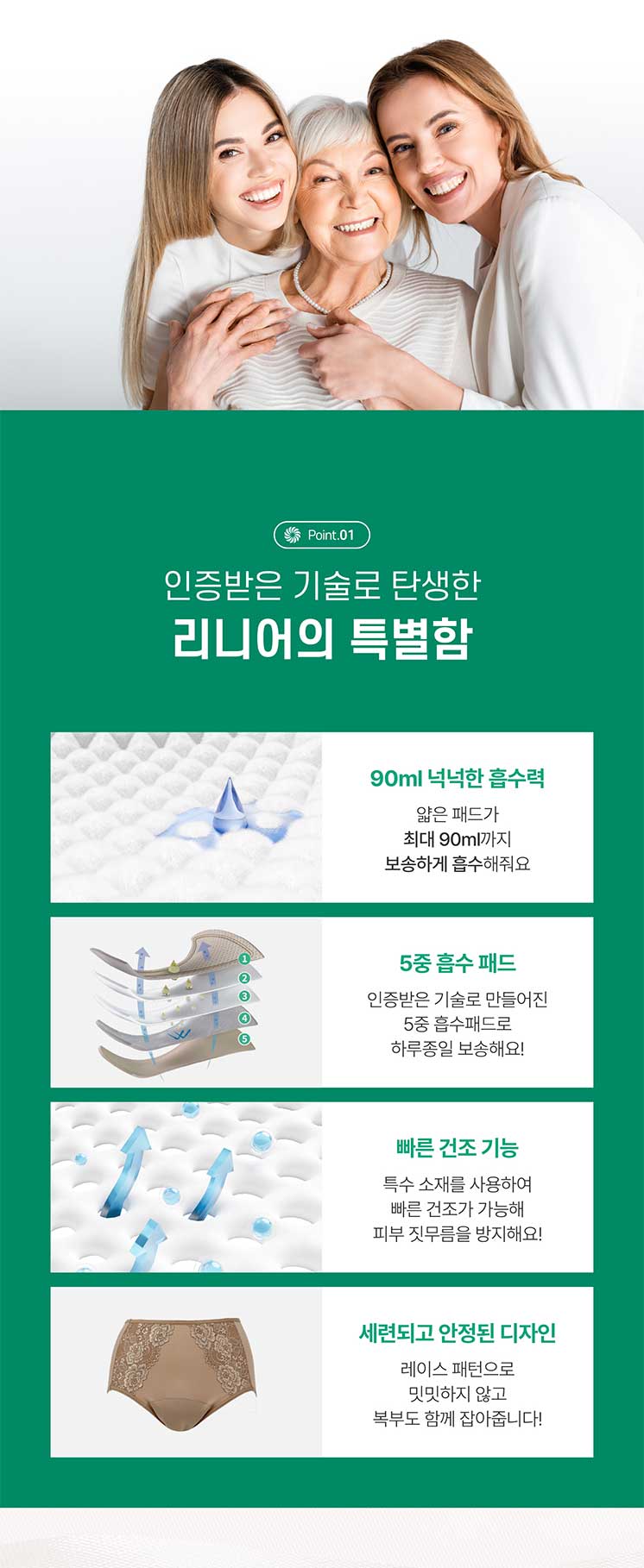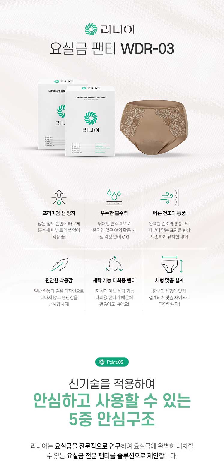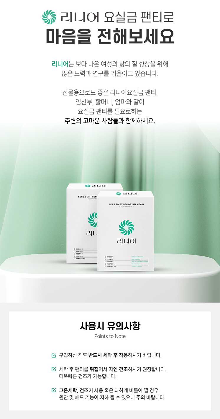 요실금팬티 : 일회용이 아닌 패드가 부착되어 세탁 후 반복사용이 가능한 일반속옷형태의 제품
